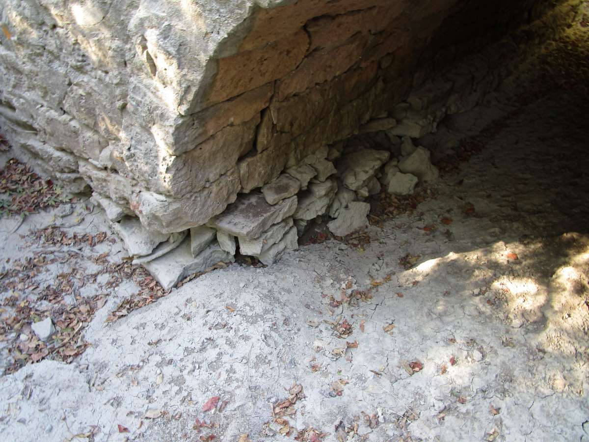 A look through the culvert reveals there are actually two stone bridge sections with a distinct seam between them; clearly the original, narrow culvert was widened with a nearly identical stone bridge butted up against it at an early date.