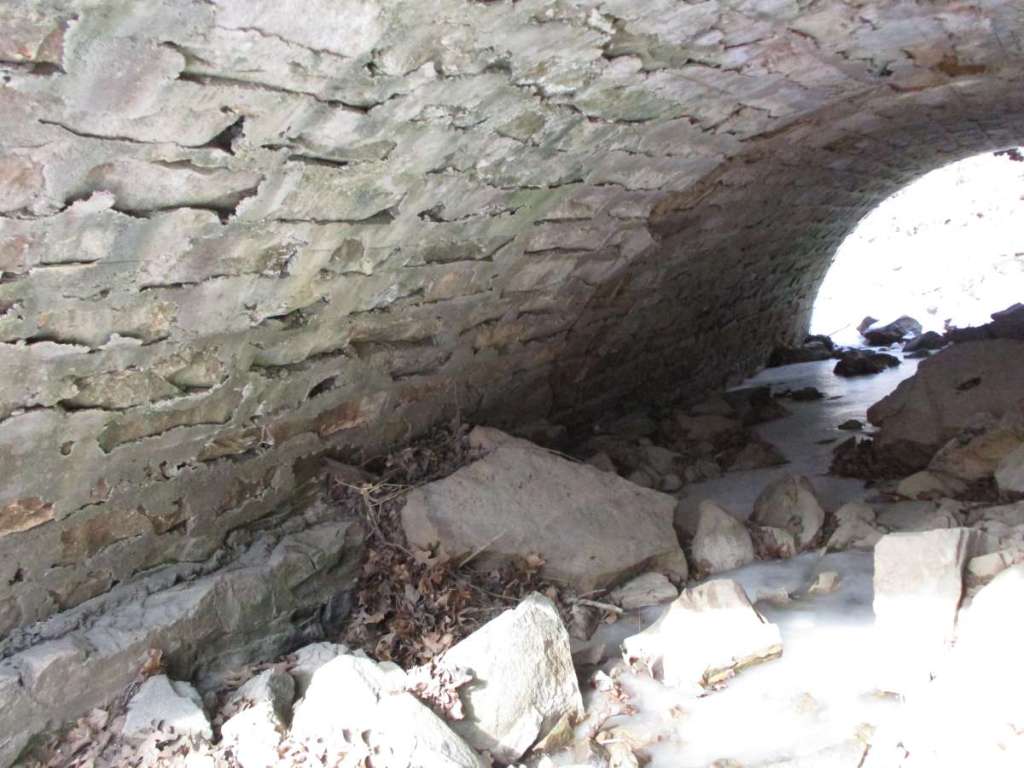 Most of the stone culverts are similar in style, but of considerable interest is the fact that there is very little difference between the original and widened portions of the culverts. A view through one of the culverts shows this fact.