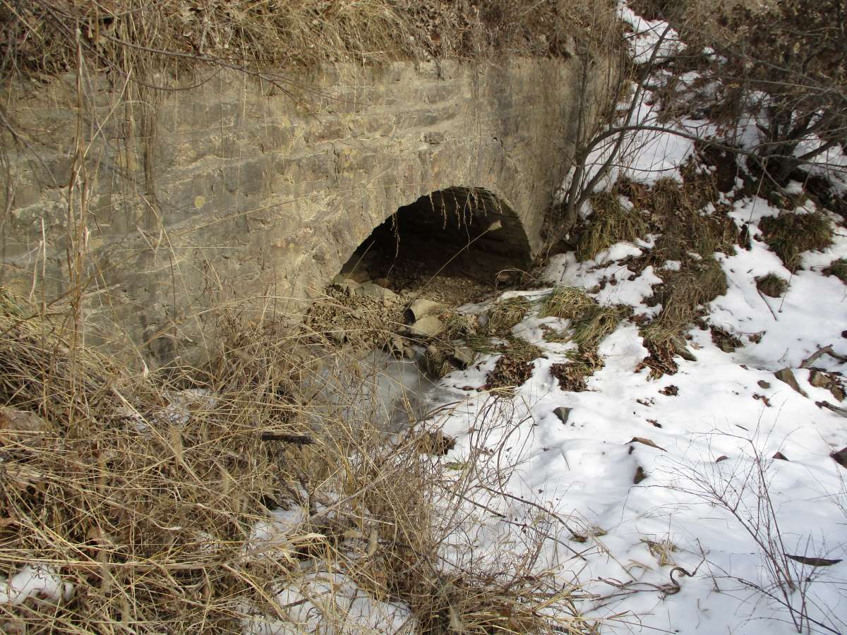 Most of the stone culverts are similar in style, but of considerable interest is the fact that there is very little difference between the original and widened portions of the culverts. A view through one of the culverts shows this fact.
