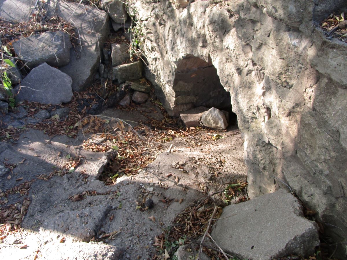 - Note: This culvert can be seen, but is heavily obscured by widening on both sides with concrete structures. The stone arch section is very wide, and shows signs that the original stone arch bridge was widened at some point with an additional stone arch section.