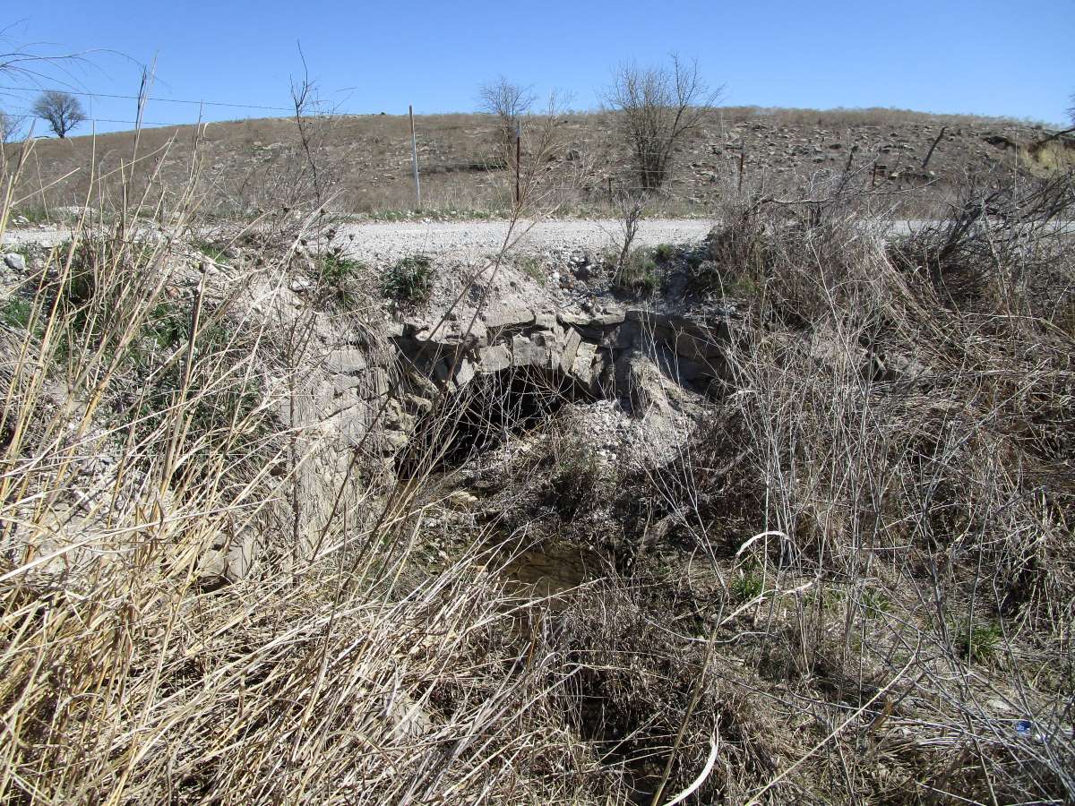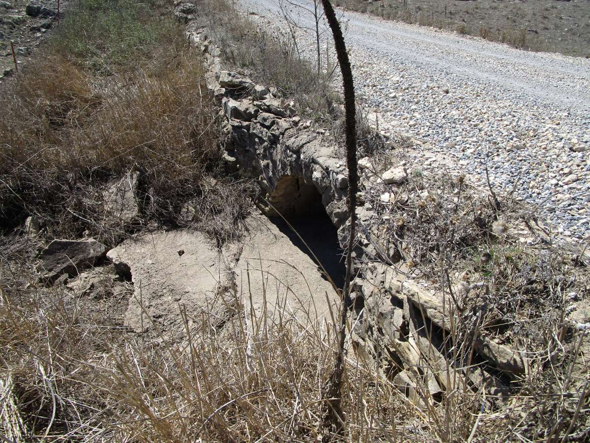 - Note: This small culvert has been widened on one side. The readily visible face of the arch is partially collapsed.